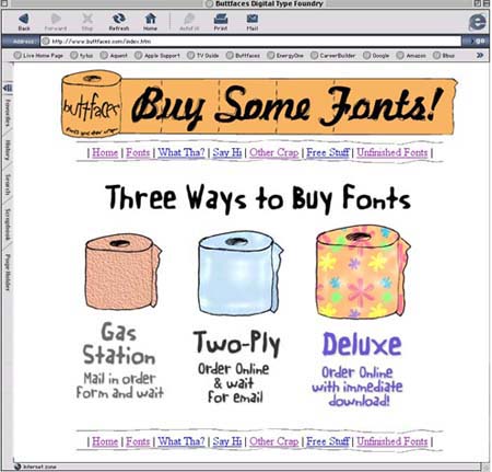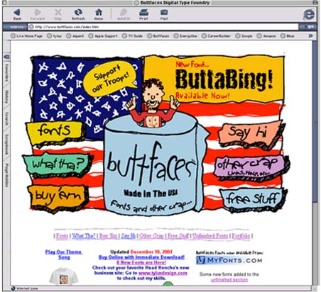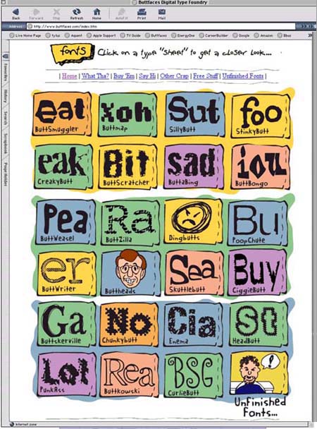Buttfaces Digital Type Foundry Page My crazy font site. I tried to make it as fun and whimsical as I could. Site is temporarily off-line. Hope you enjoy it!