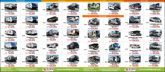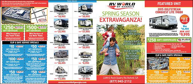 Catalog insert designed for the Priority RV quarterly mailer targeted demographically by customer's location. Done on a freelance basis.