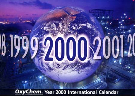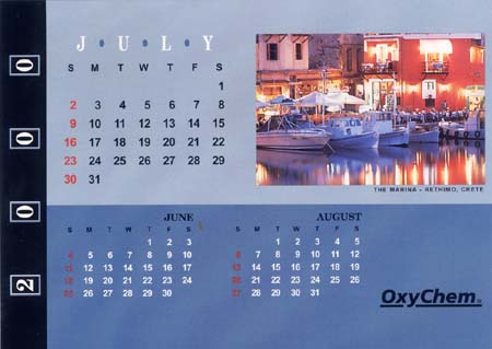 Cover and a sample month layout for OxyChem's International calendar.