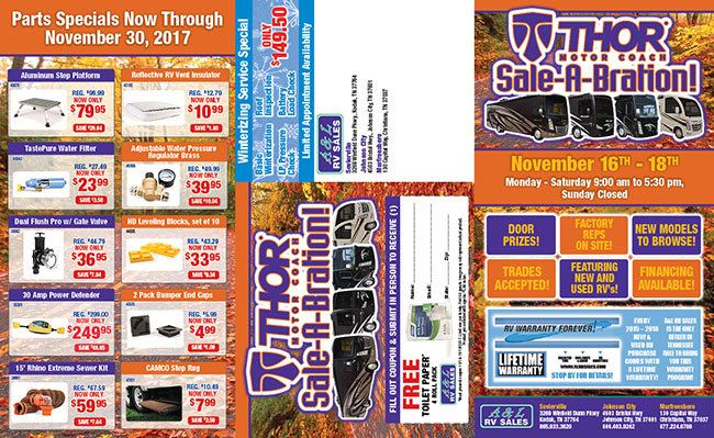 Tri-Fold Direct Mail piece promoting a Tennessee RV Company, A&L RV.