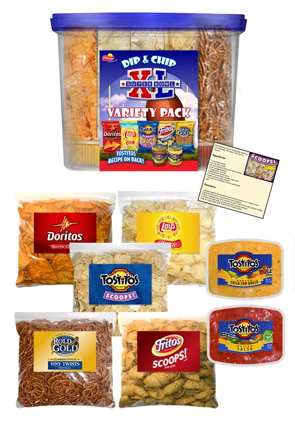 Costco "Tubs" Package mockups for themed Plastic tubs with select Frito Lay products for inclusion in Costco and BJ's wholesale outlets.